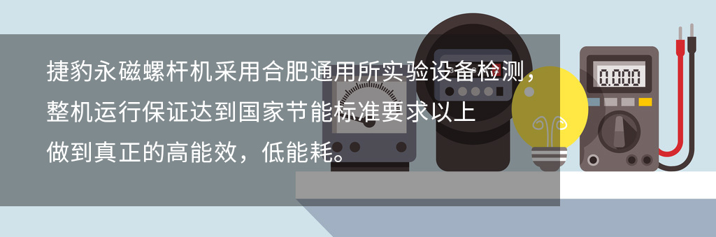 - 節(jié)能要求:隨著社會的不斷進步和科學的發(fā)展,節(jié)能已經(jīng)越來越成為人們關心的話題。沒有高效節(jié)能效果,就算購買的空壓機再便宜,導致用電成本增高,那也是得不償失的;捷豹永磁螺桿機采用合肥通用所實驗設備檢測,整機運行保證達到國家節(jié)能標準要求以上,實現(xiàn)節(jié)能12%-20%,做到真正的高能效,低能耗。